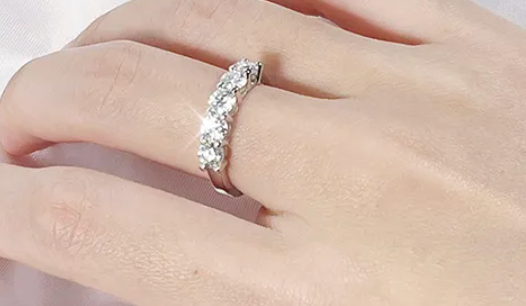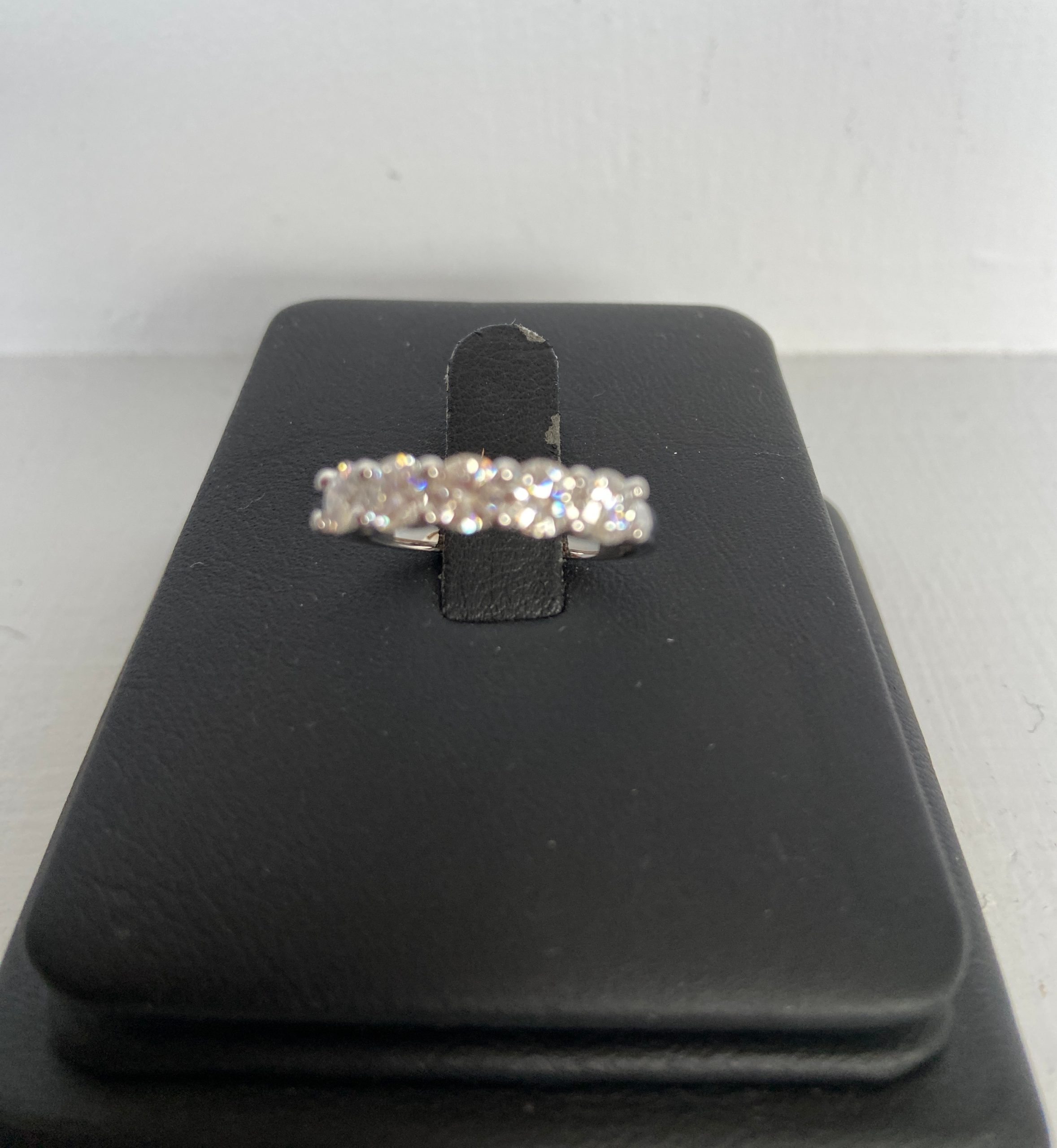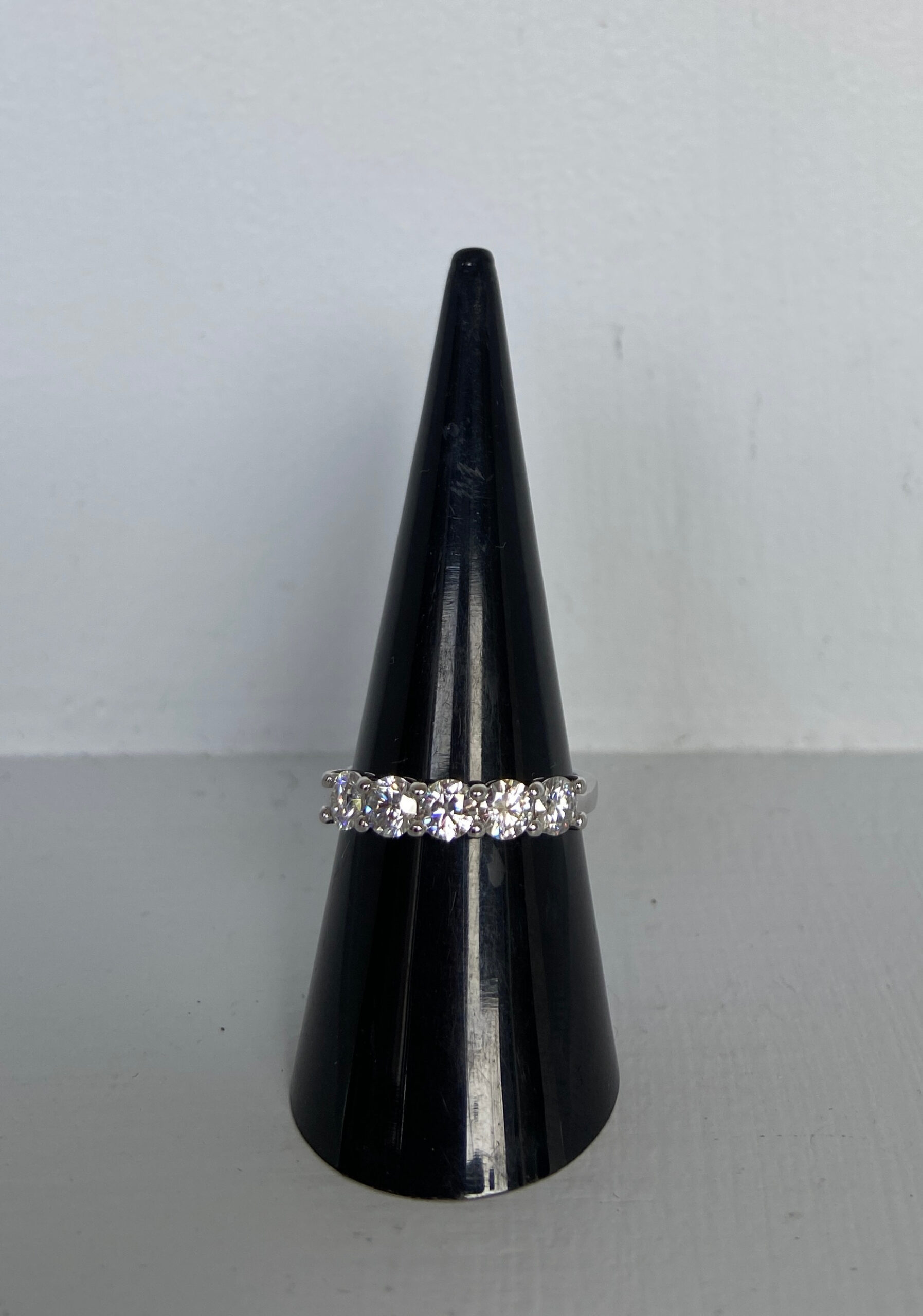 A lovely 1.5 ct 5 stone Moissanite ring. The stones are 4mm each in size.