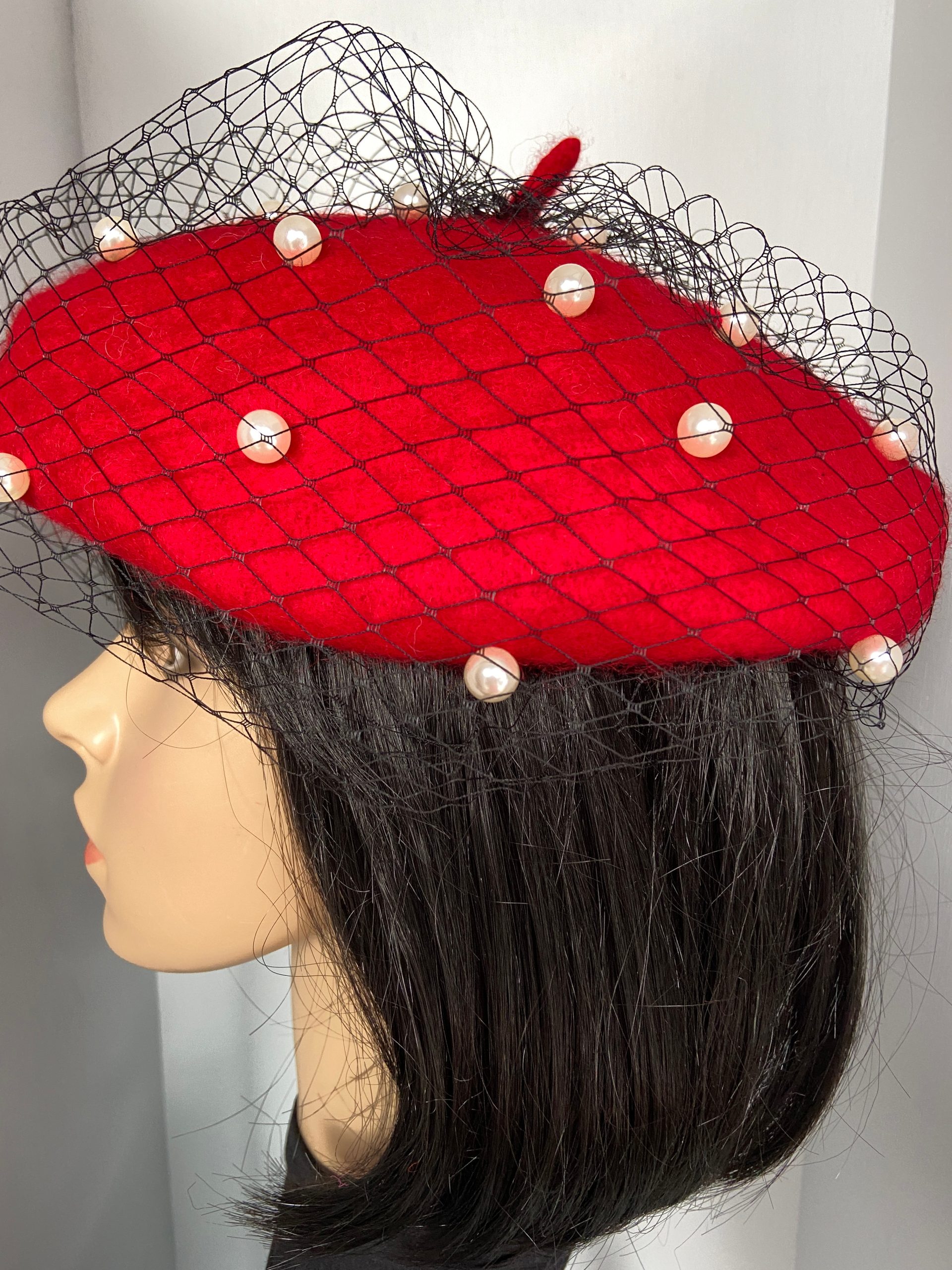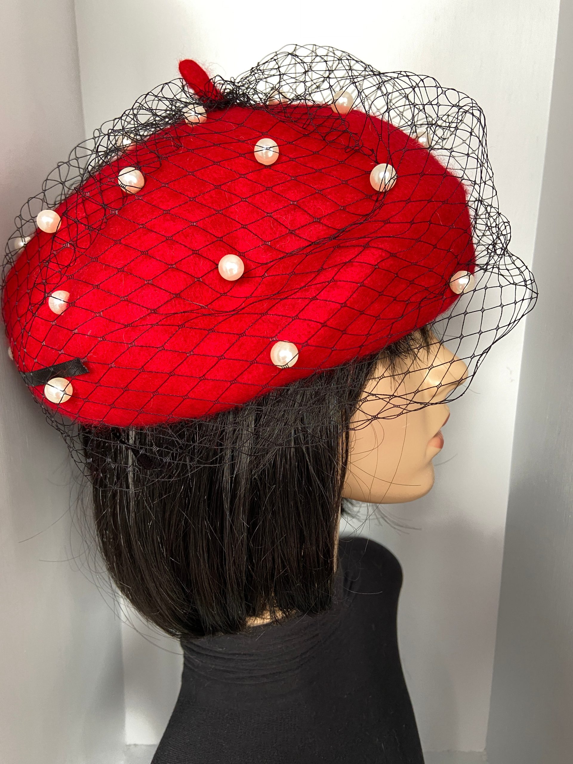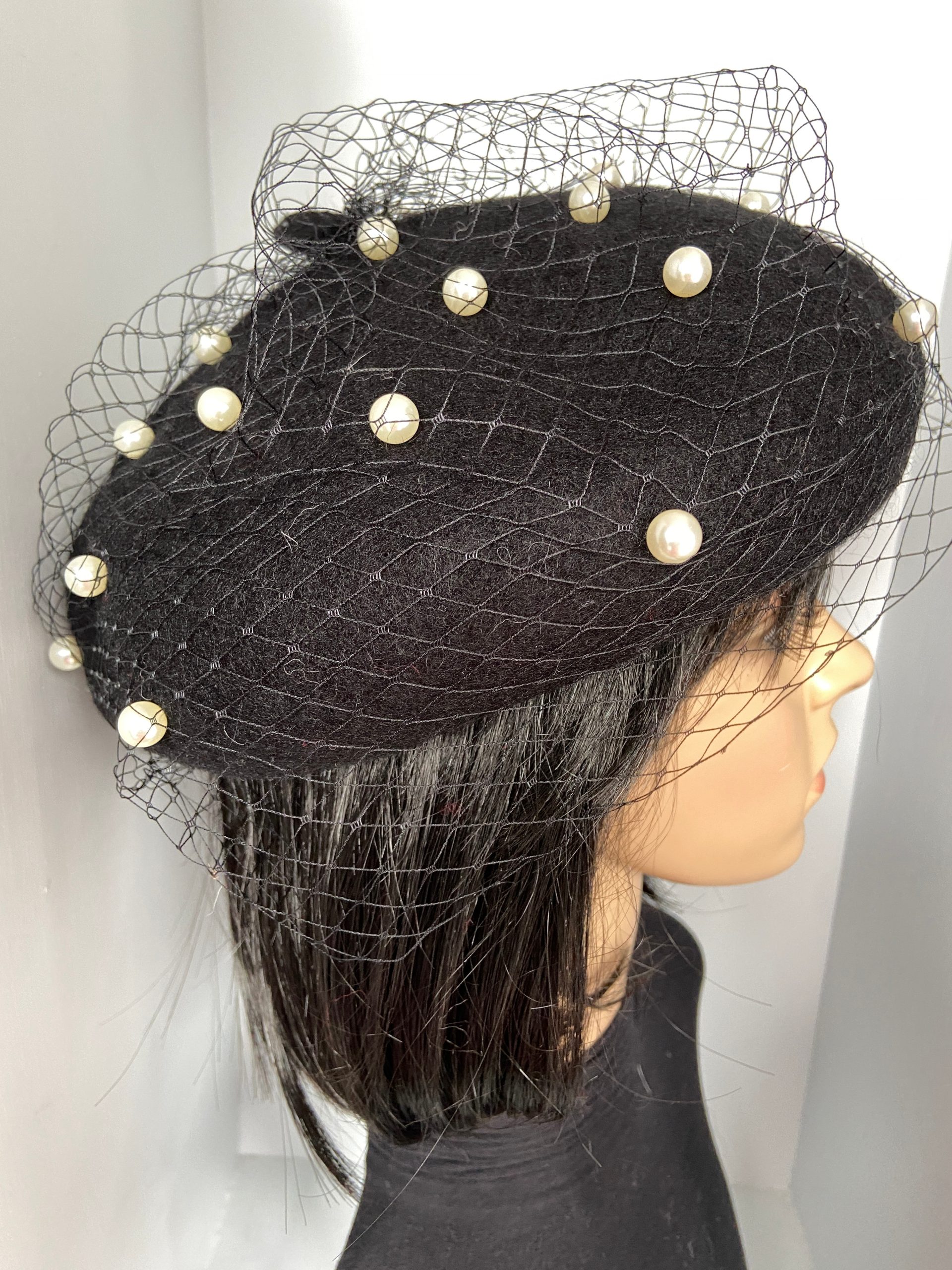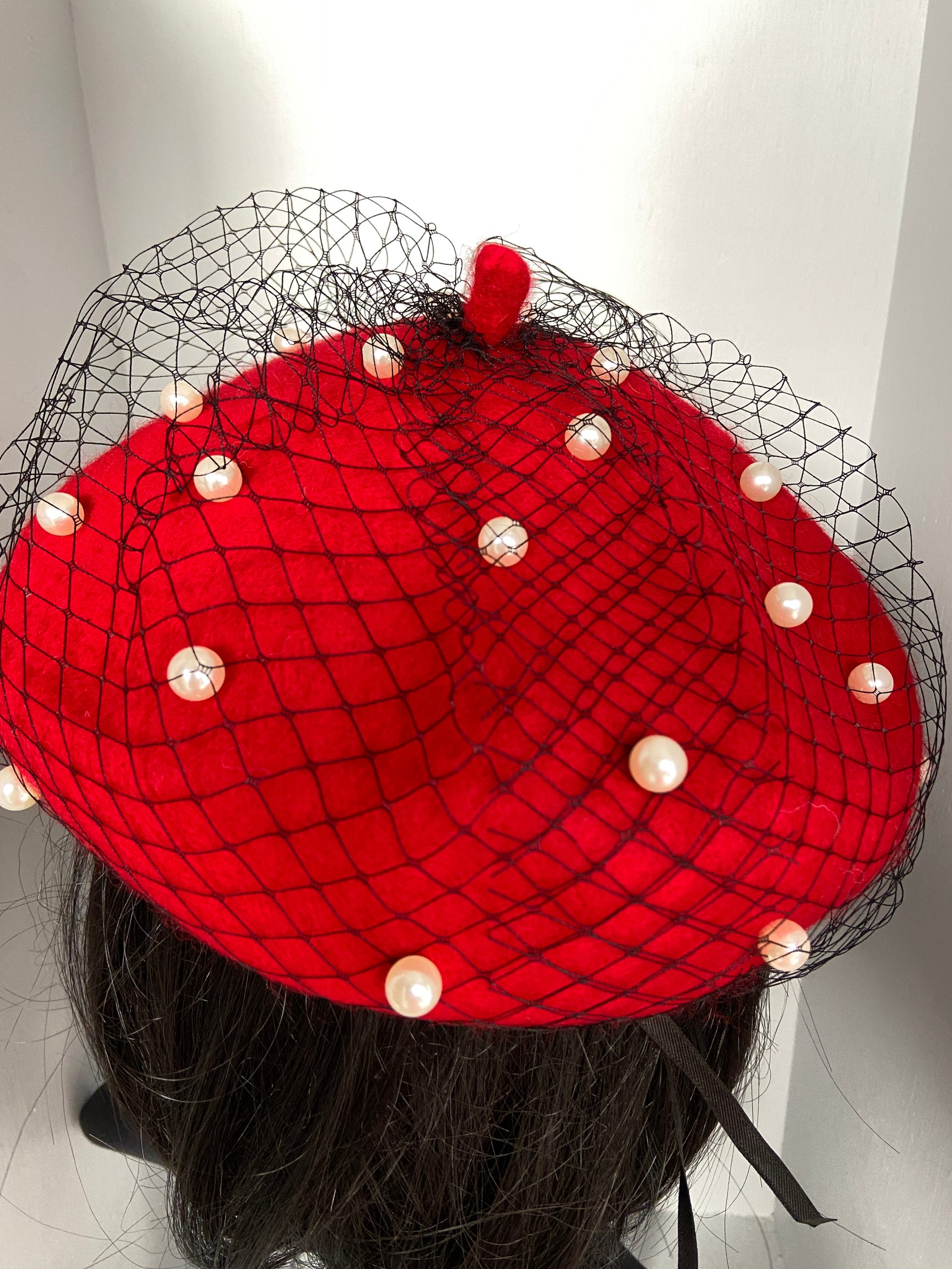 The berets are a lovely winter weight and have pearl beads and topped with net.